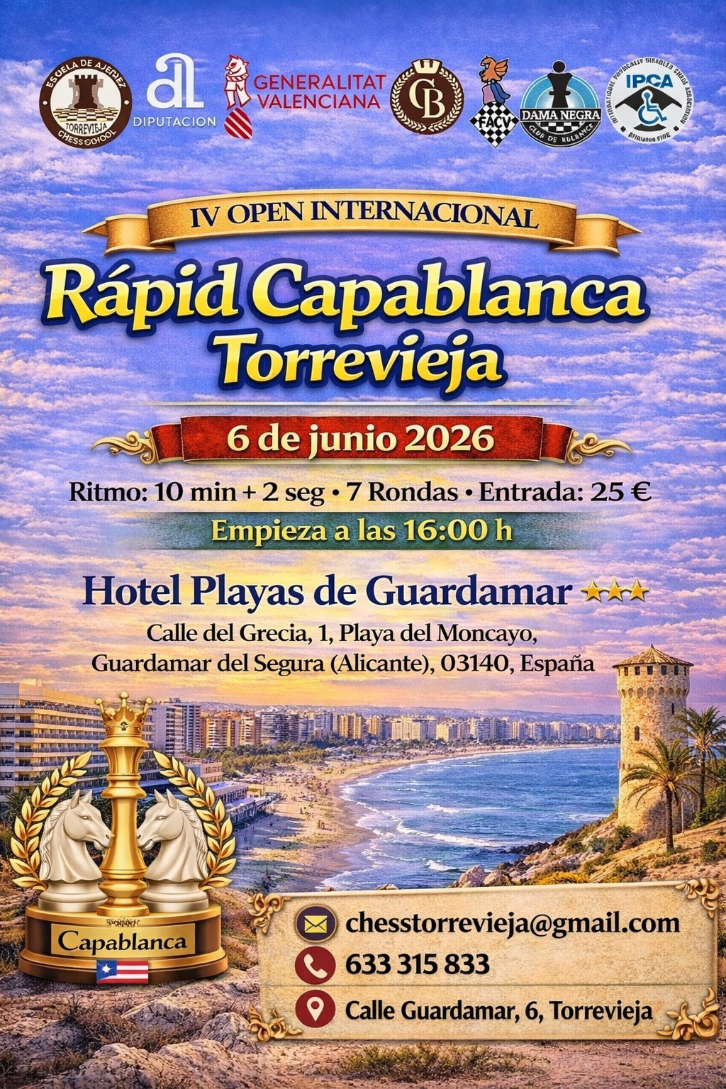 6 (Rapid) y 7(Blitz) de Junio en Guardamar del Segura, Alicante. Abierto para TOD@S!